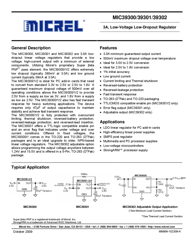 MIC39300/39301/39302 Data Sheet (11/05/2015)