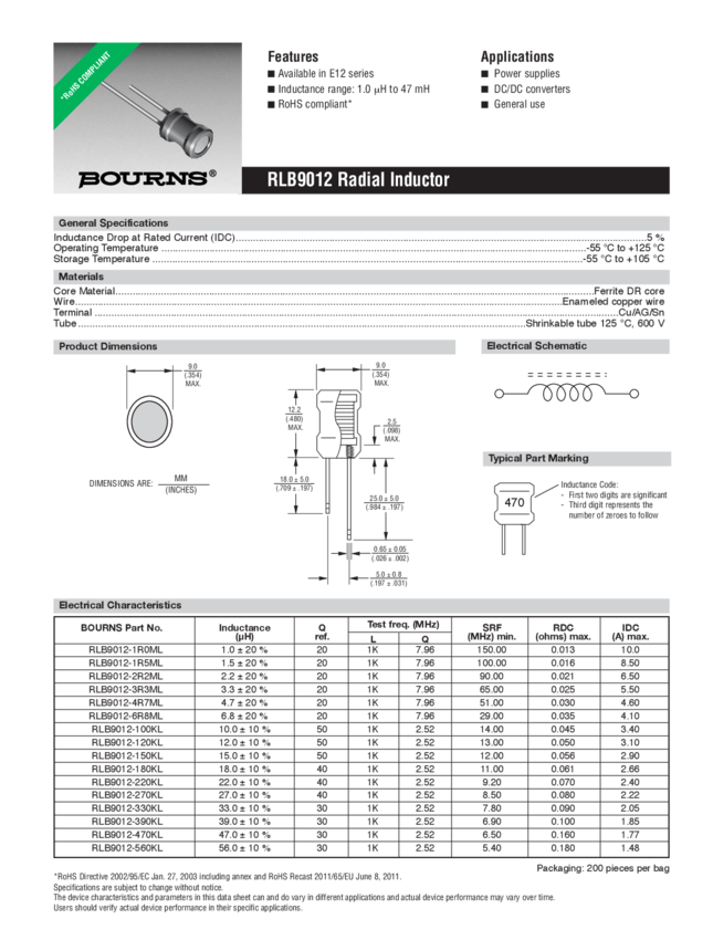 Ind Power Wirewound 39mH 10% 1KHz 15Q-Factor Ferrite 80mA RDL Bag