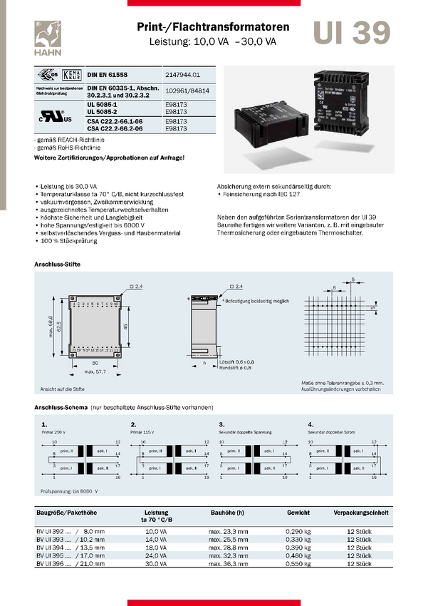 Transformator BV UI 394 0063 Hahn BV UI 394 0063 N/A N/A