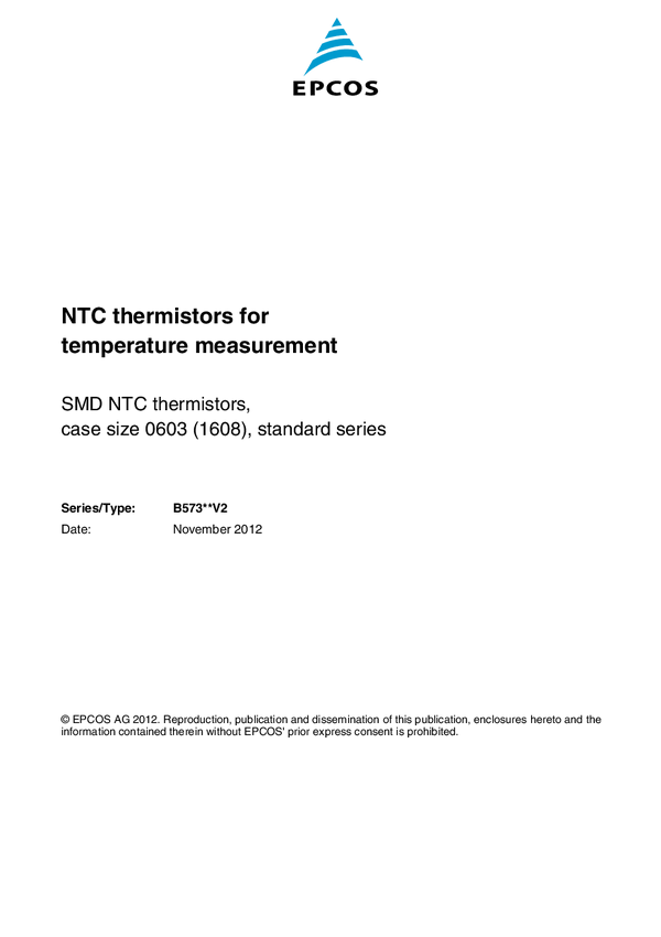 TDK B57321V2103J060 B57321V2103J060 NTC Czujnik temperatury -55 do +125 °C 10 kΩ 3940 K 603 SMD taśma cięta