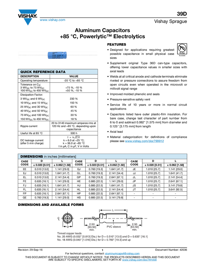Aluminum Capacitors +85 °C, Powerlytic™ Electrolytics