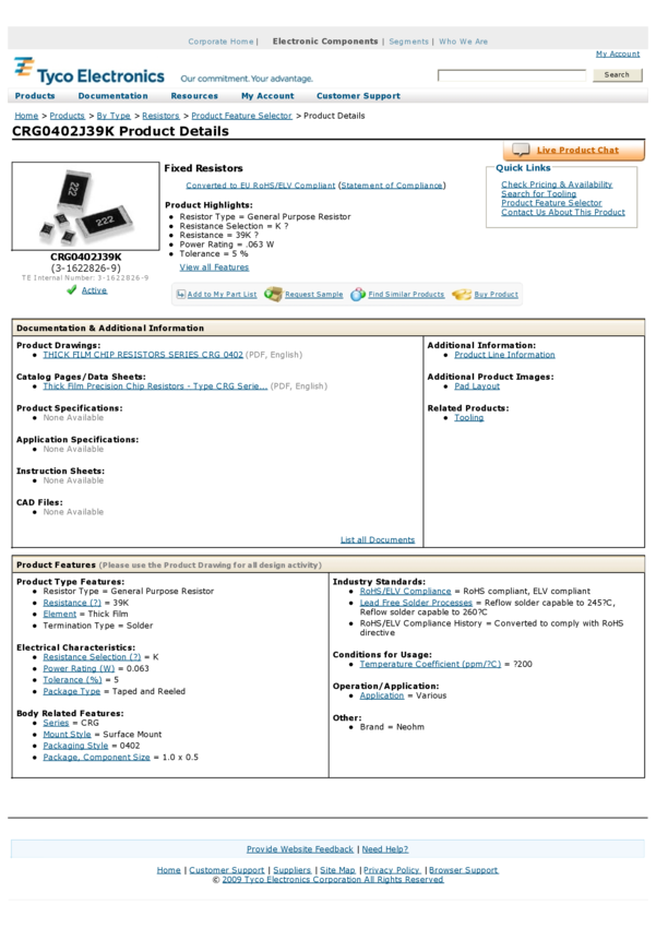 Res Thick Film 0402 39K Ohm 5% 1/16W ±200ppm/°C Molded SMD T/R