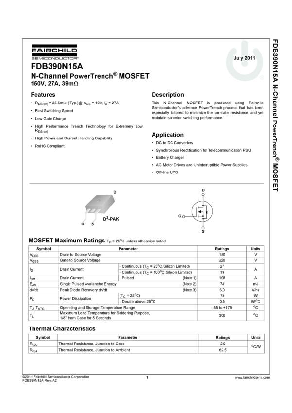 N-Channel PowerTrench® MOSFET 150V, 27A, 39mΩ