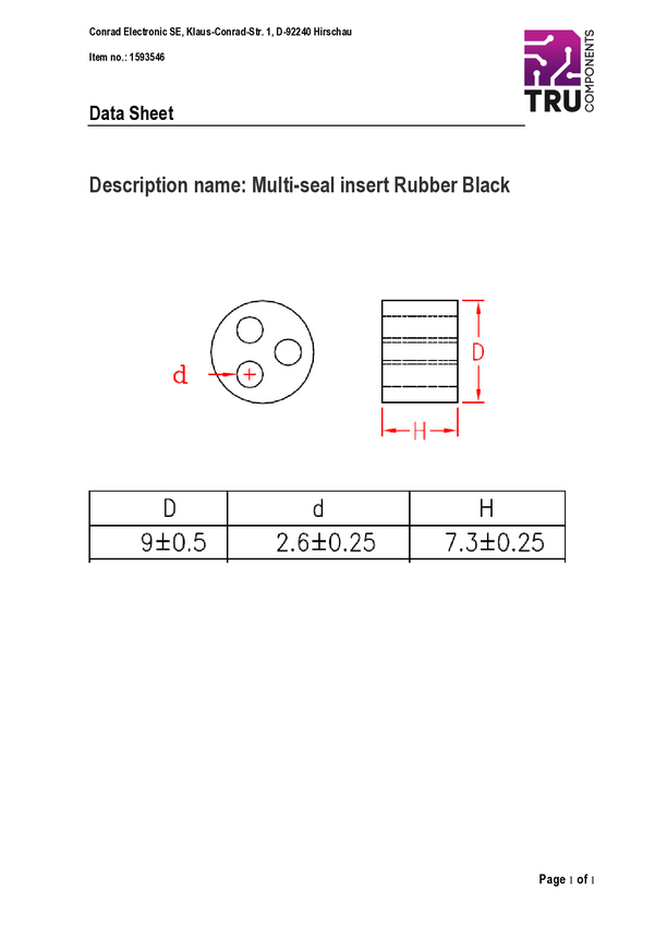 TRU COMPONENTS 1593546 Wkład uszczelniający TC-MH9-3A203, M12, 1 szt.