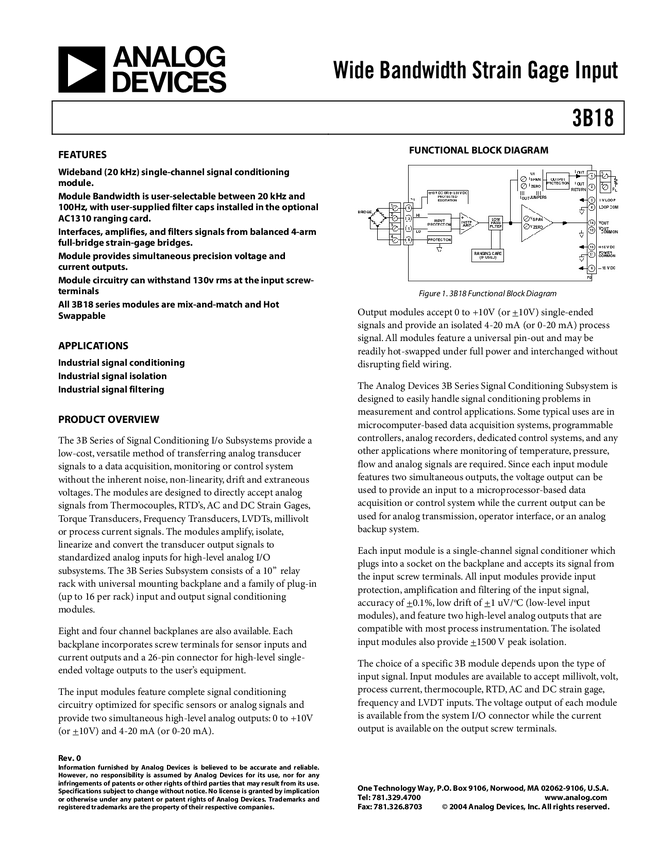 Non-Isolated Strain Gage Input; 3 Hz Bandwidth Signal Conditioning Module