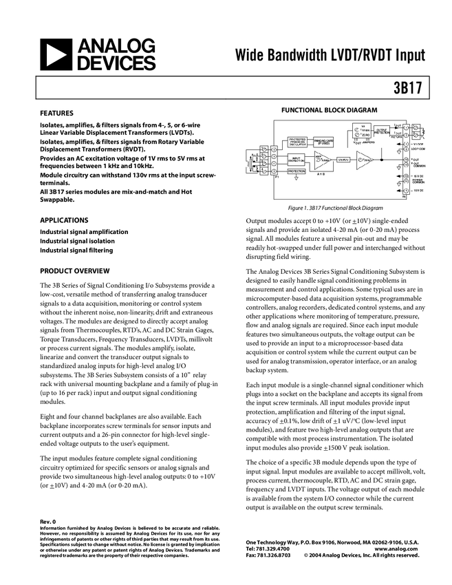 Non-Isolated LVDT or RVDT Input Signal Conditioning Module