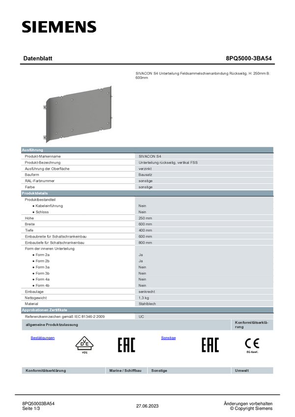 Pooddział Siemens 8PQ5000-3BA54 1 szt.