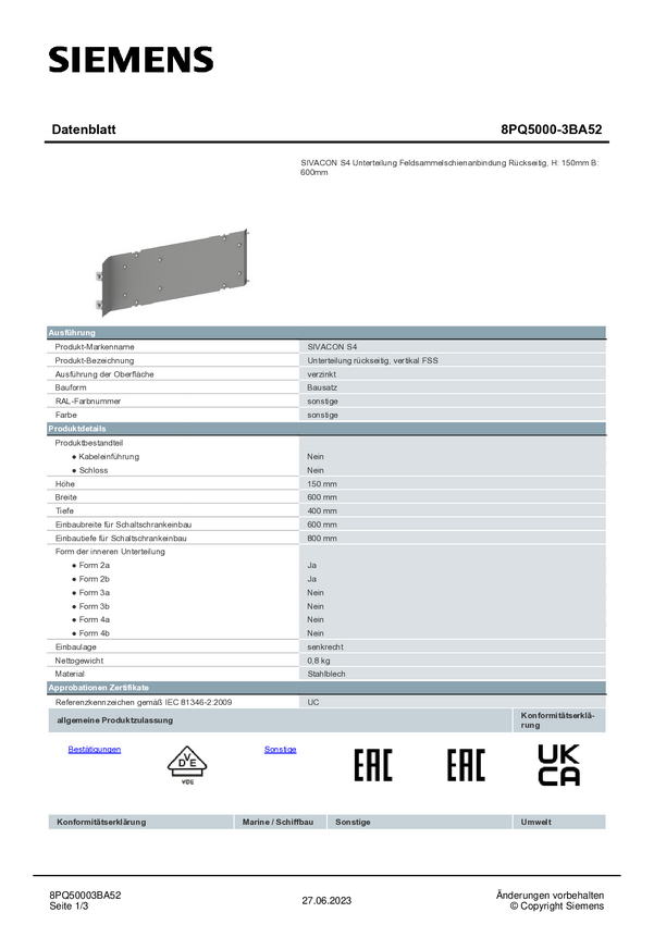 Pooddział Siemens 8PQ5000-3BA52 1 szt.