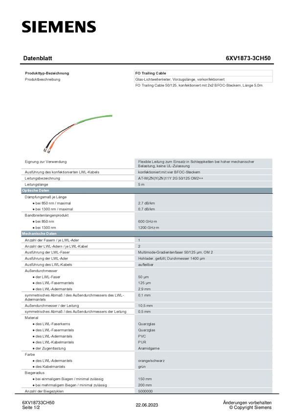 Siemens 6XV1873-3CH50 Kabel LWL