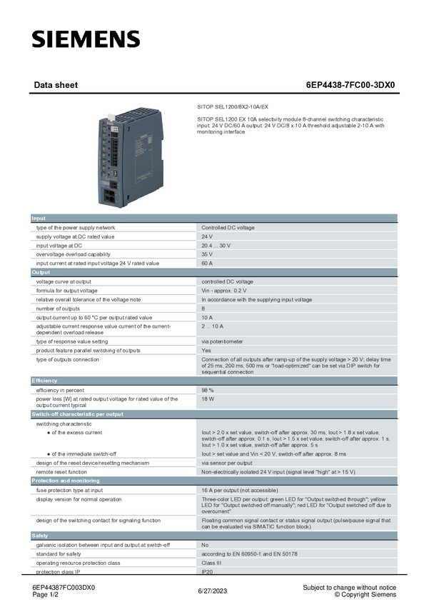 Siemens 6EP44387FC003DX0 6EP4438-7FC00-3DX0, 1 szt.