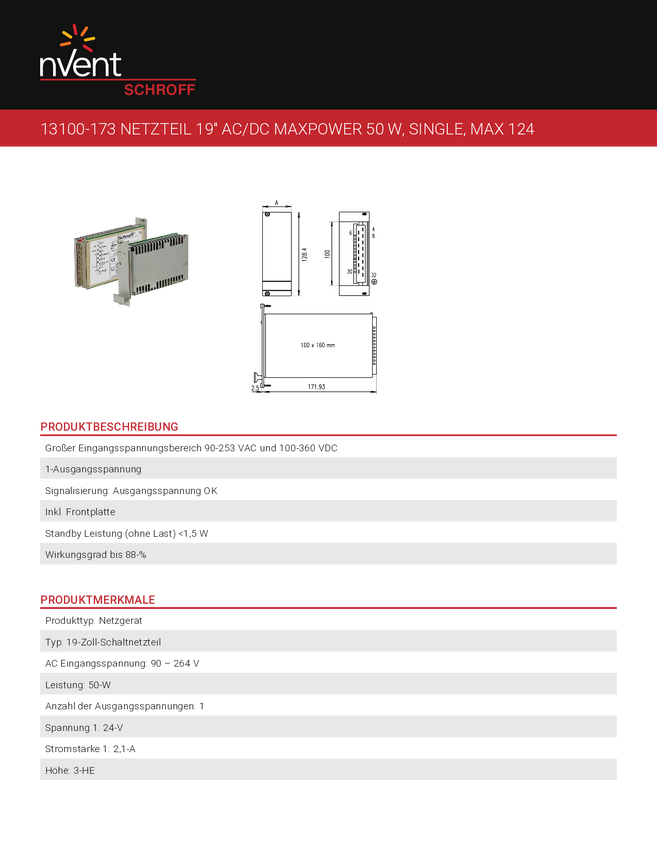 ZASILACZ Schroff 19" MAX50-112 3HE 6TE