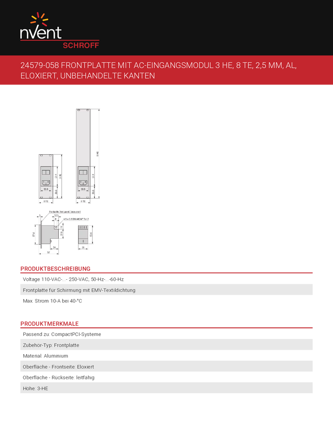 nVent SCHROFF 21006954 Panel przedni 3HE 6TE MAXLR/UR