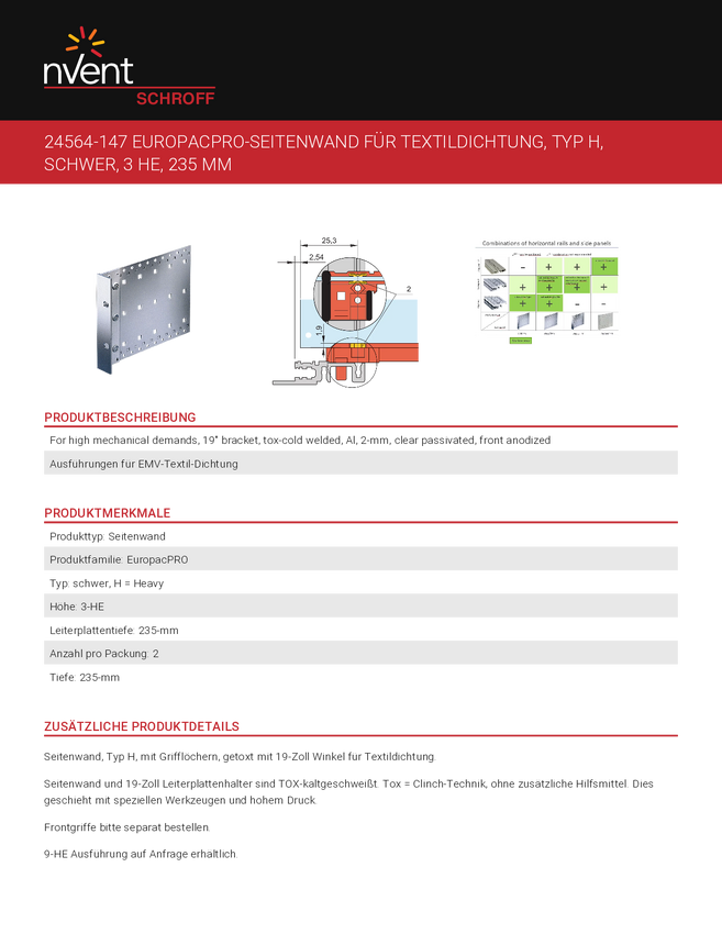 Ścianki boczne SCHROFF typ H do uszczelnienia tekstylnego - SEITENWD.H 3HE 235T O.GR.2ST