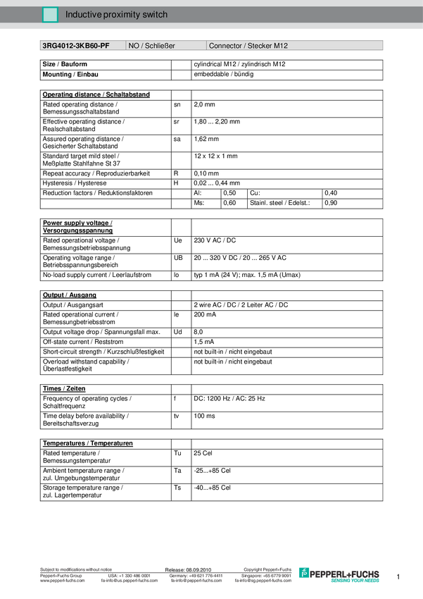 Pepperl+Fuchs Czujnik indukcyjny 3RG4012-3KB00-PF