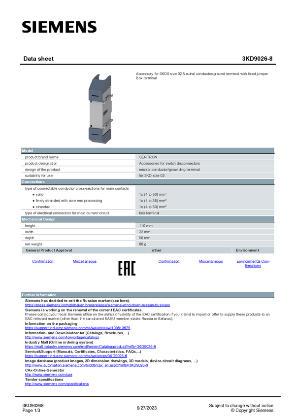Zestaw akcesoriów Siemens 3KD9026-8 1 szt.