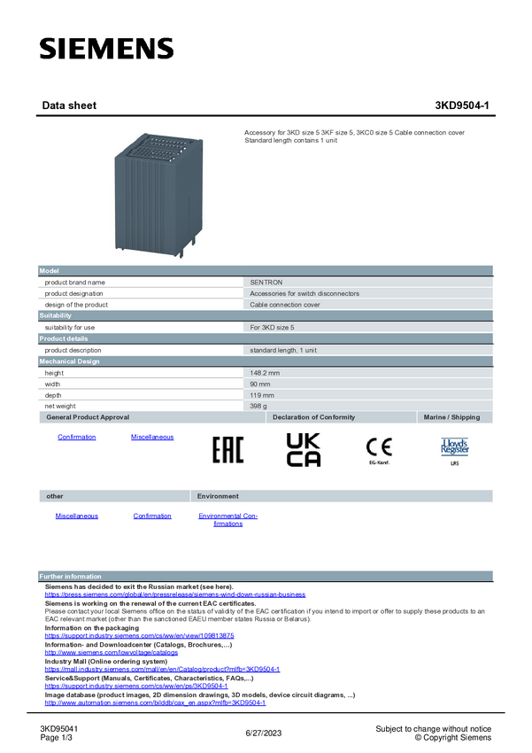 Zestaw akcesoriów Siemens 3KD9504-1 1 szt.