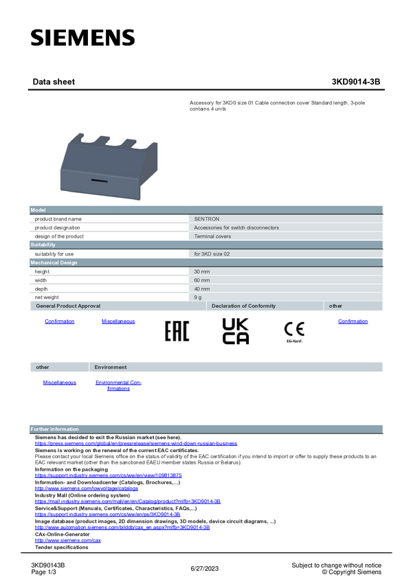 Zestaw akcesoriów Siemens 3KD9014-3B 1 szt.