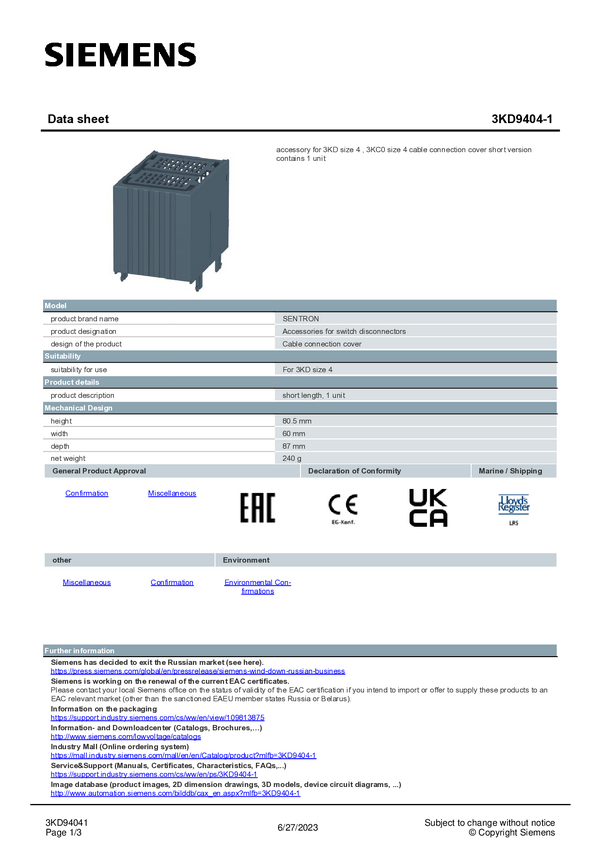 Zestaw akcesoriów Siemens 3KD9404-1 1 szt.