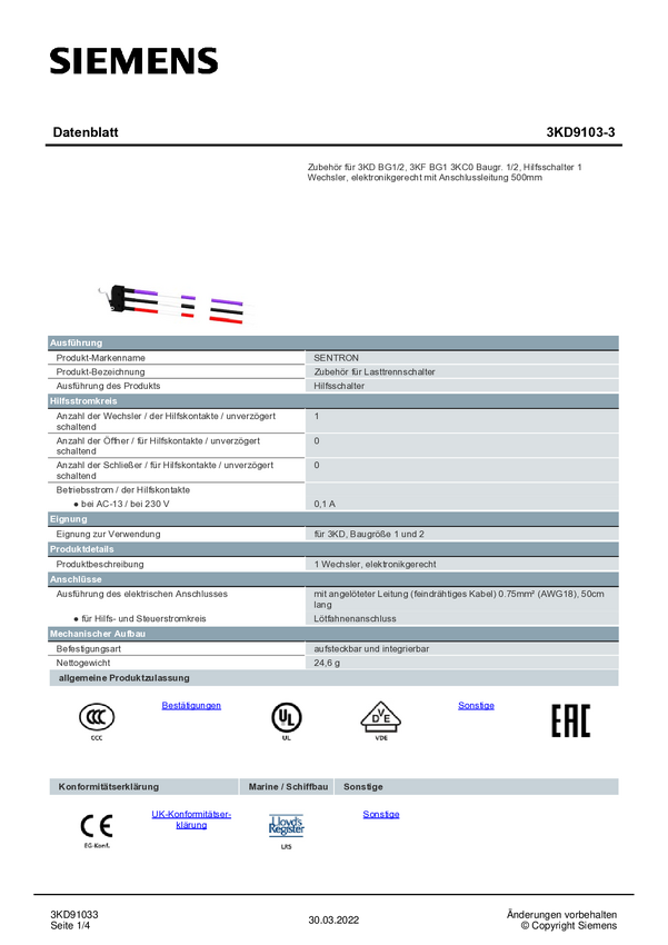 Siemens 3KD9103-3 Przełącznik pomocniczy 1 szt.