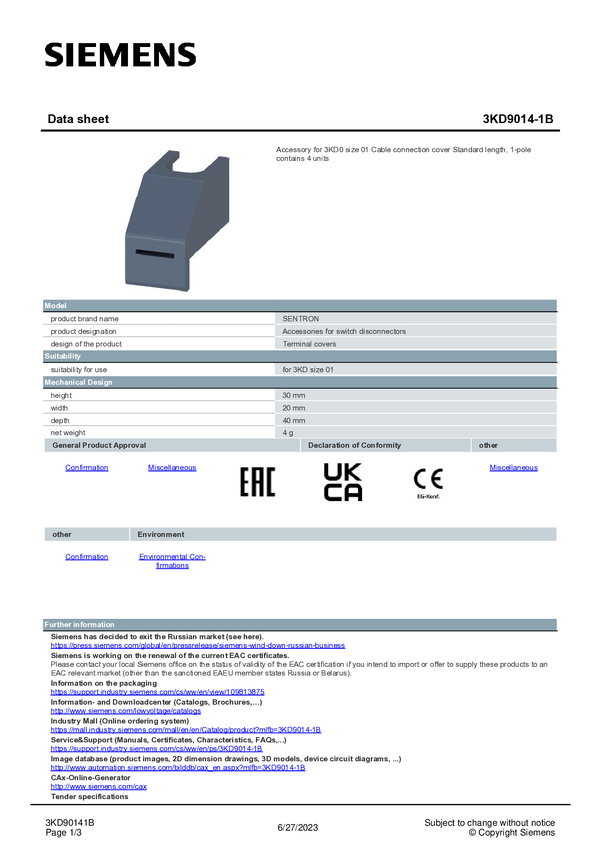 Zestaw akcesoriów Siemens 3KD9014-1B 1 szt.