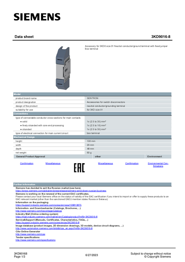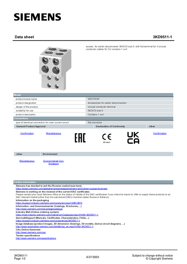 Płaskie połączenie Siemens 3KD9511-1 1 szt.