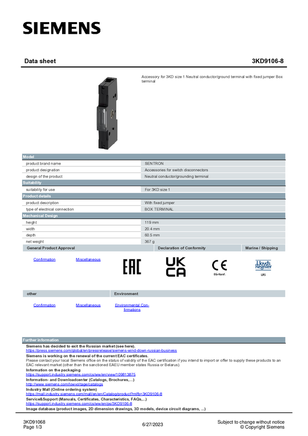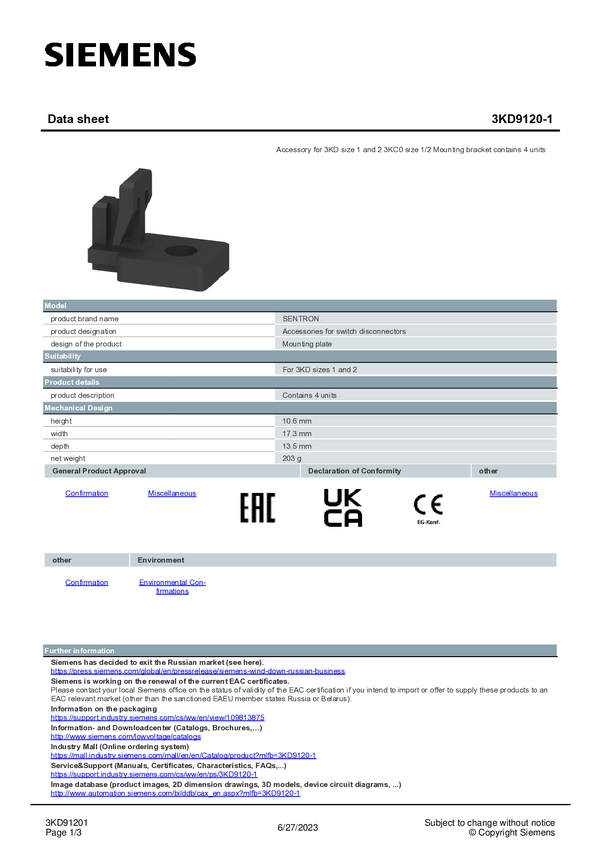 Zestaw akcesoriów Siemens 3KD9120-1 1 szt.