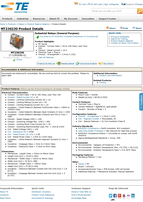 Electromechanical Relay DPDT 20A 230VAC 8.3KOhm Socket