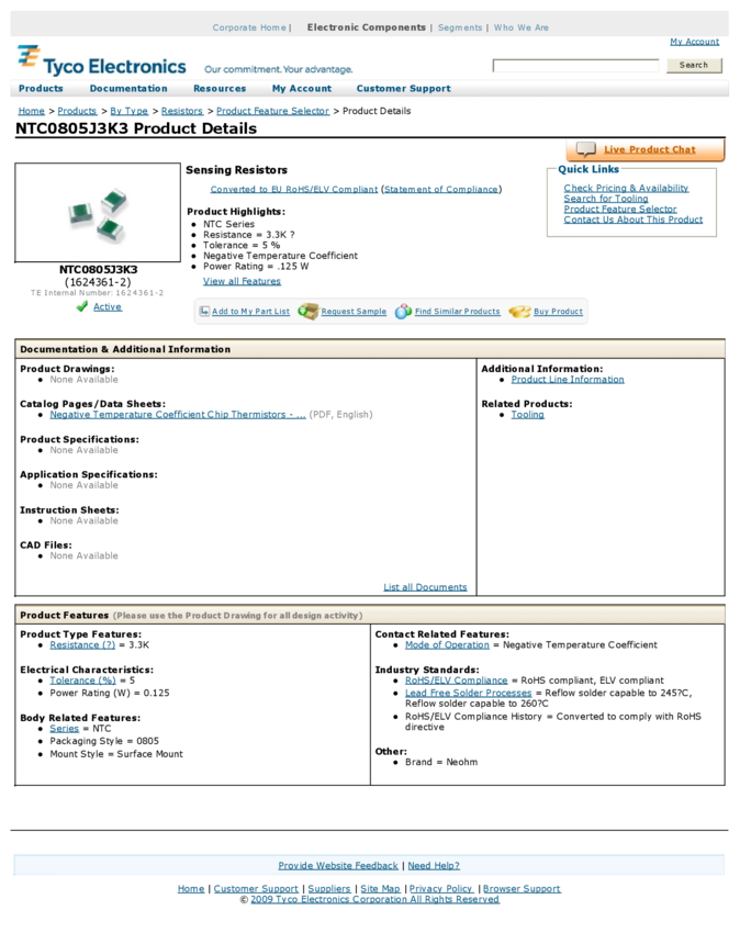 Thermistor NTC 3.3KOhm 5% 2-Pin 0805 T/R