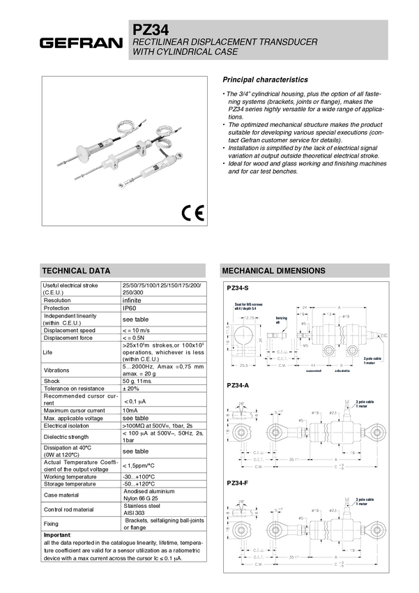 Czujnik położenia-Electrical Travel 3.00"(76)mm;Tol.20%; lin 0,25%; moc 0,75W; śr.16mm; dł. 114mm;+ wodzik 104mm zak.tmp.-55+125 st; trwałość 10 mil.cykli; rezystancja 3kohm Akcesoria 600-52 (Rod end Bearing); 600-51 (Mocowanie)
