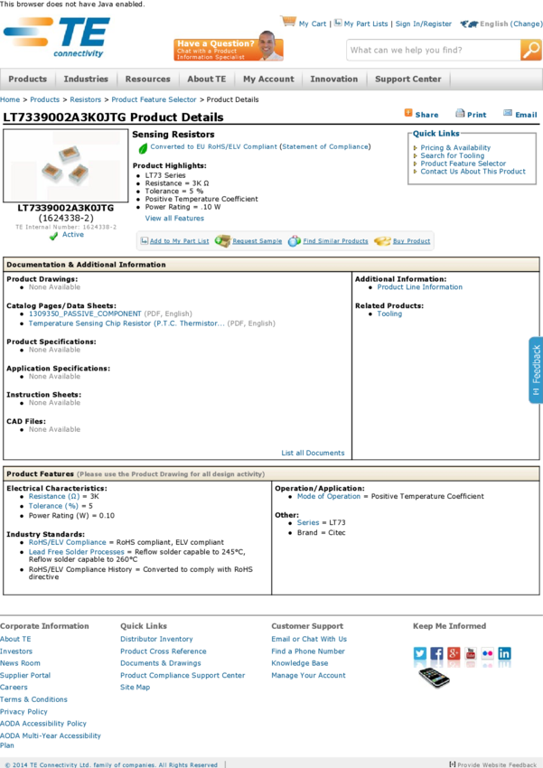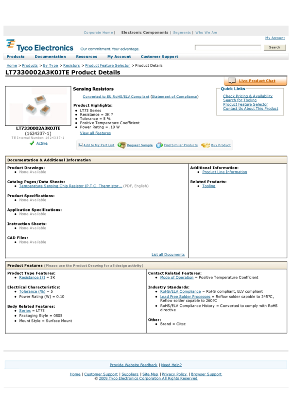 Thermistor PTC 3KOhm 5% 2-Pin 0805 T/R