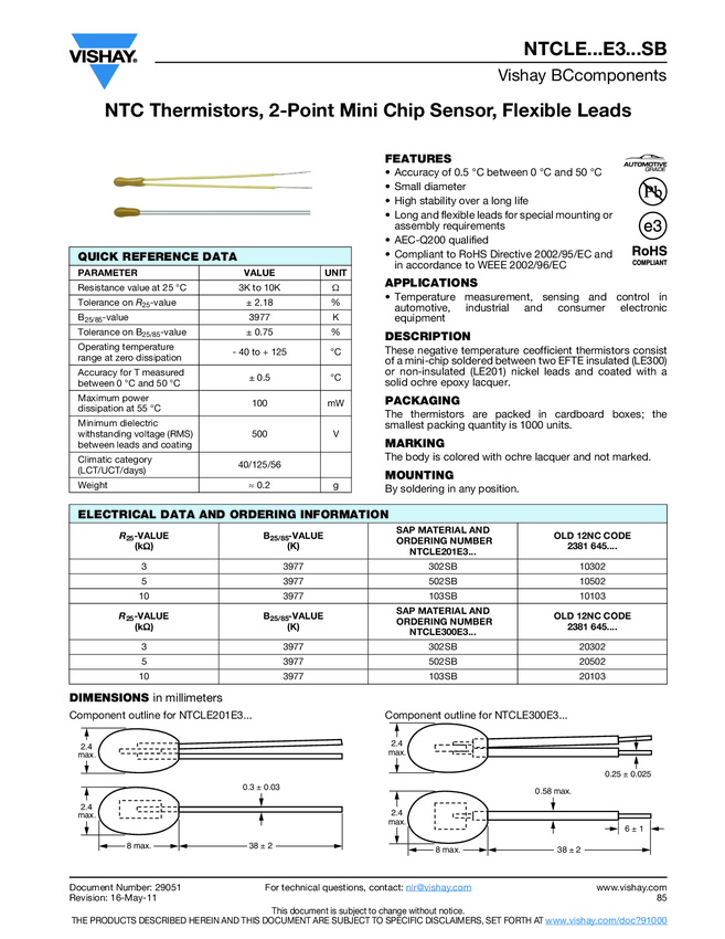 Thermistor NTC 3KOhm 2.18% 2-Pin Radial Cardboard Box