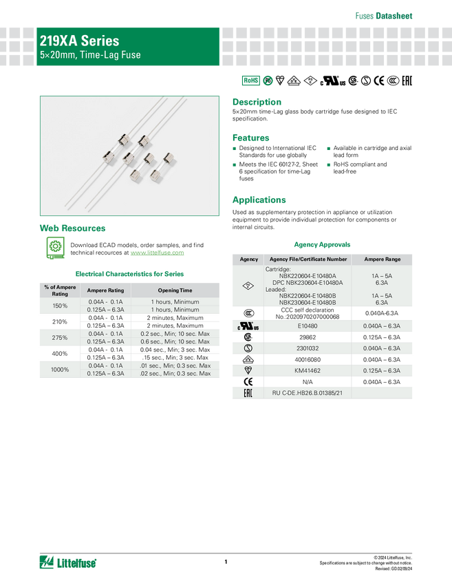 Littelfuse 021906.3MXAP 021906.3MXAP Bezpiecznik 250 V Zawartość 1 szt. towar pakowany luzem