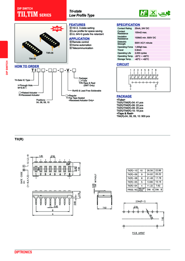 Switch DIP 3PST 9 Raised Slide 0.025A24VDC Gull Wing SMD Tube