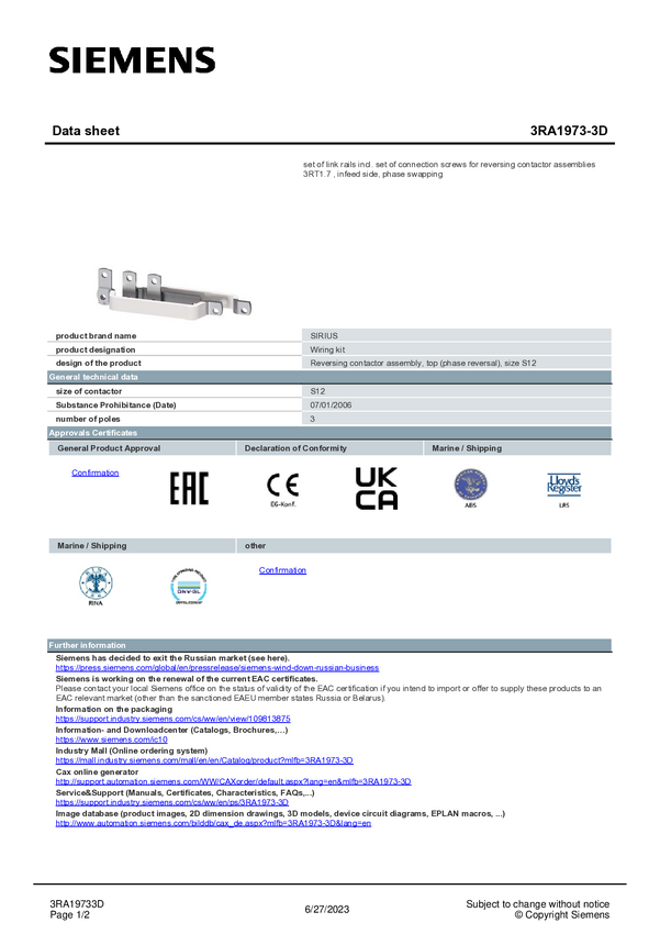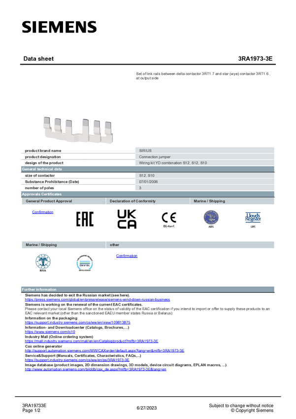 Element połączeniowy Siemens 3RA1973-3D 3RA19733D, 1 szt.