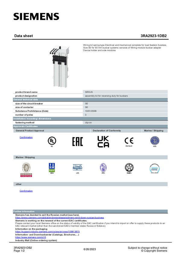 Siemens 3RA2933-1DB1 Zestaw podłączeniowy 1 szt.