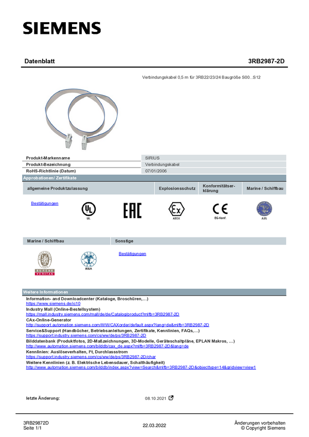 Kabel połączeniowy Siemens 3RB2987-2D 1 szt.
