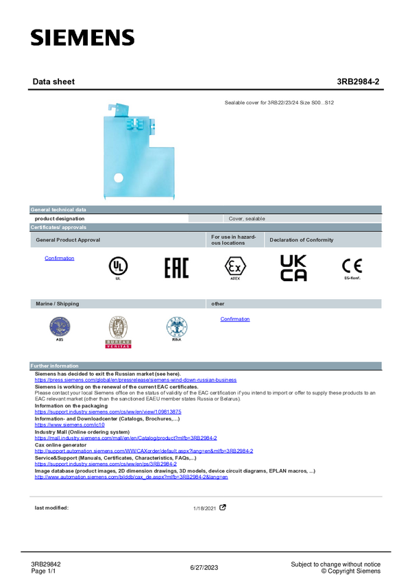 Siemens 3RB29842 3RB2984-2 Pokrywa 10 szt.