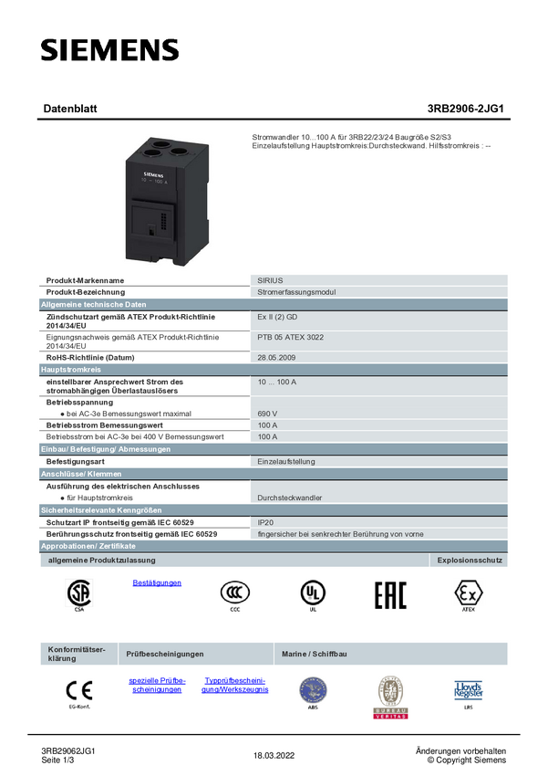 Blok zasilający Siemens 3RB2906-2JG1 1 szt.