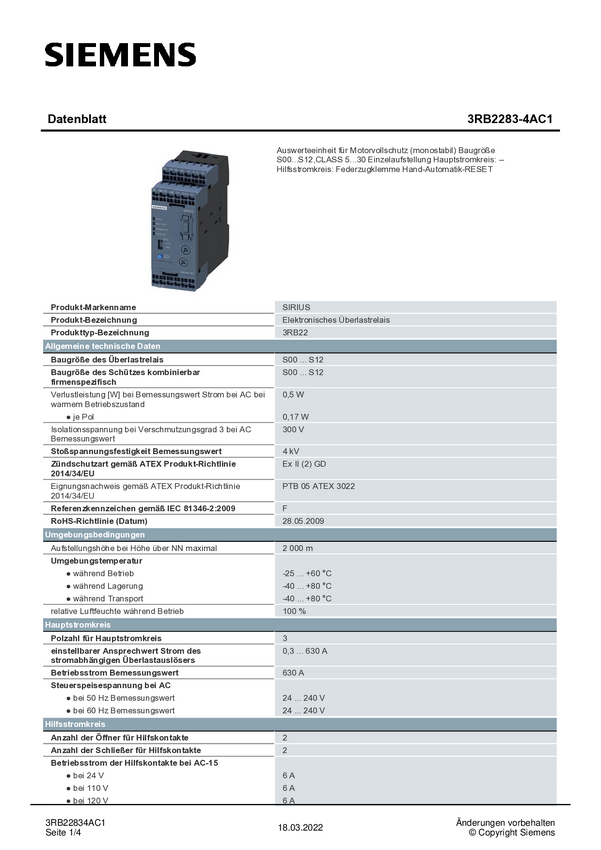 Siemens 3RB22834AC1 Jednostka ewaluacyjna 3RB2283-4AC1, 1 szt.