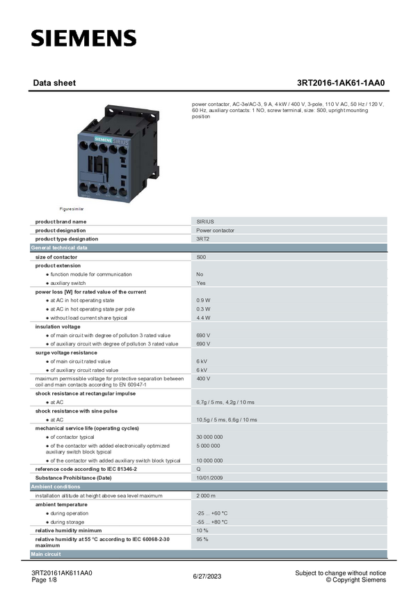 3RT20161AK611AA0
