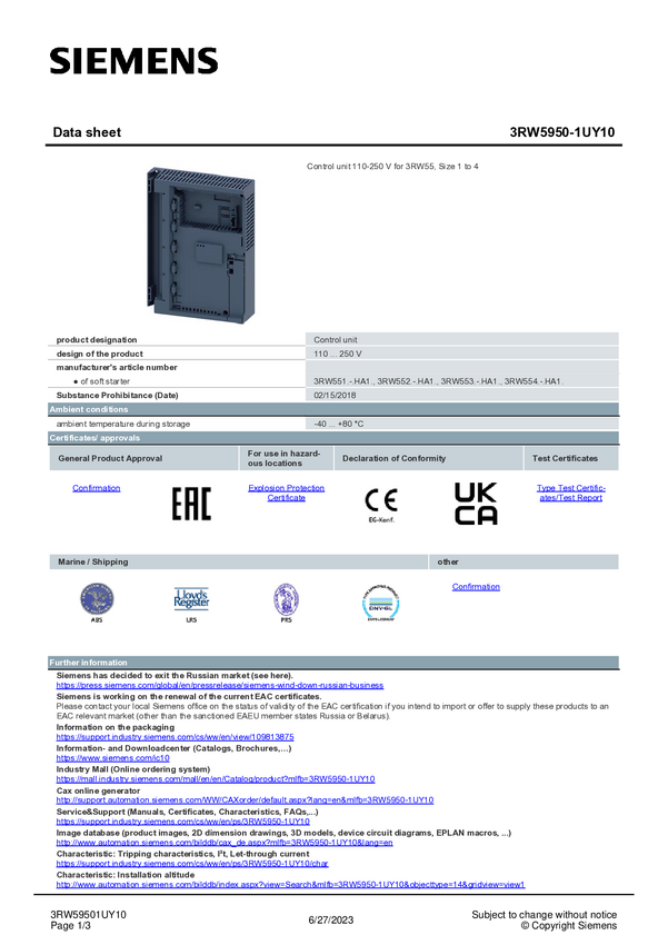 Sterowanie Siemens 3RW5950-1UY10 3RW59501UY10