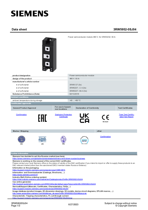 Półprzewodnik mocy Siemens 3RW5952-0SH04 3RW59520SH04