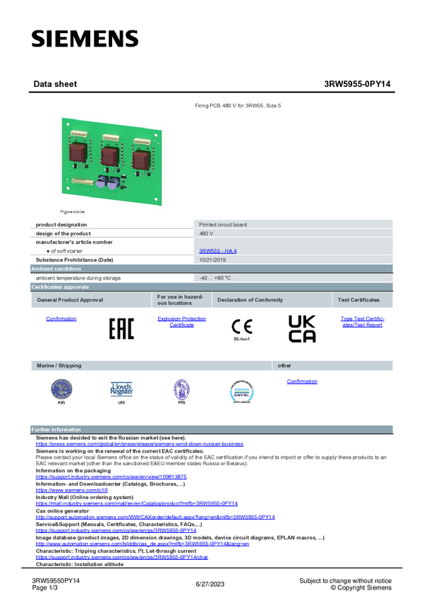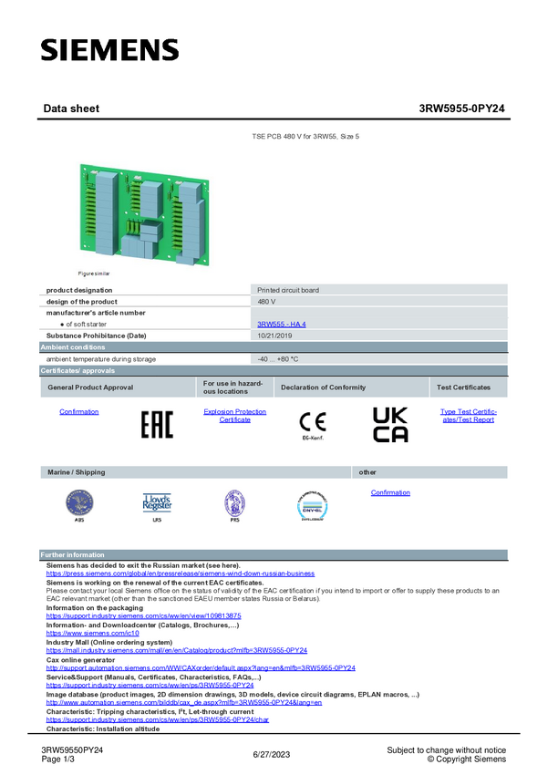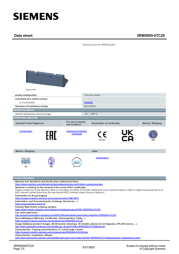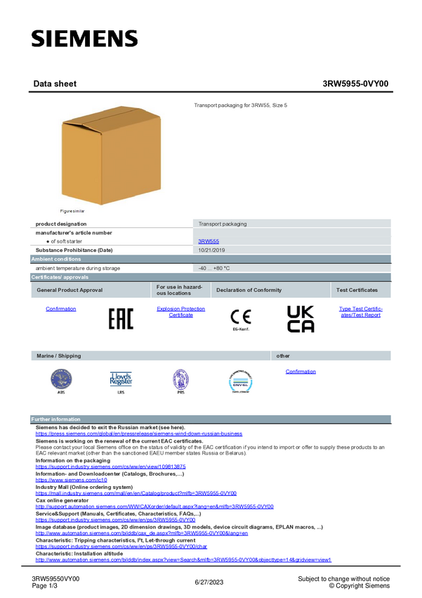 Opakowanie transportowe Siemens 3RW5955-0VY00 3RW59550VY00