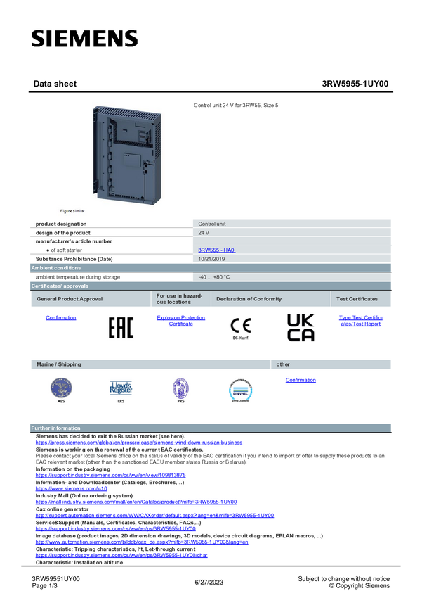 Sterowanie Siemens 3RW5955-1UY00 3RW59551UY00