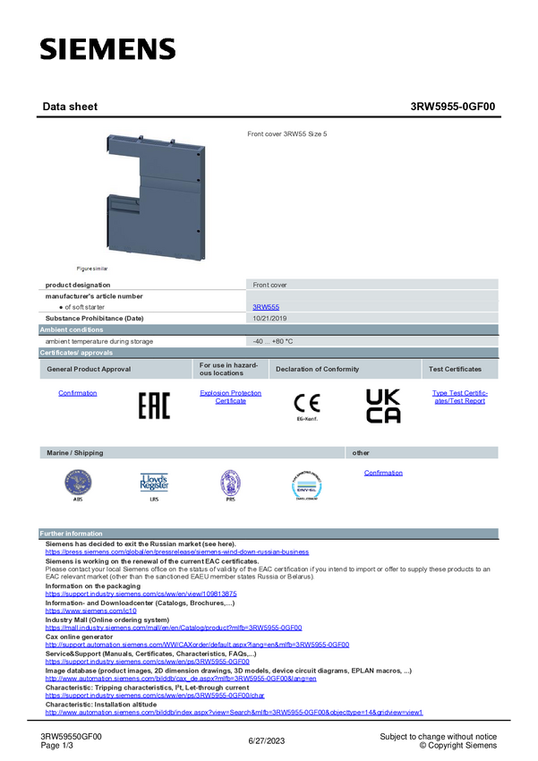 Przednia okładka Siemens 3RW5955-0GF00 3RW59550GF00