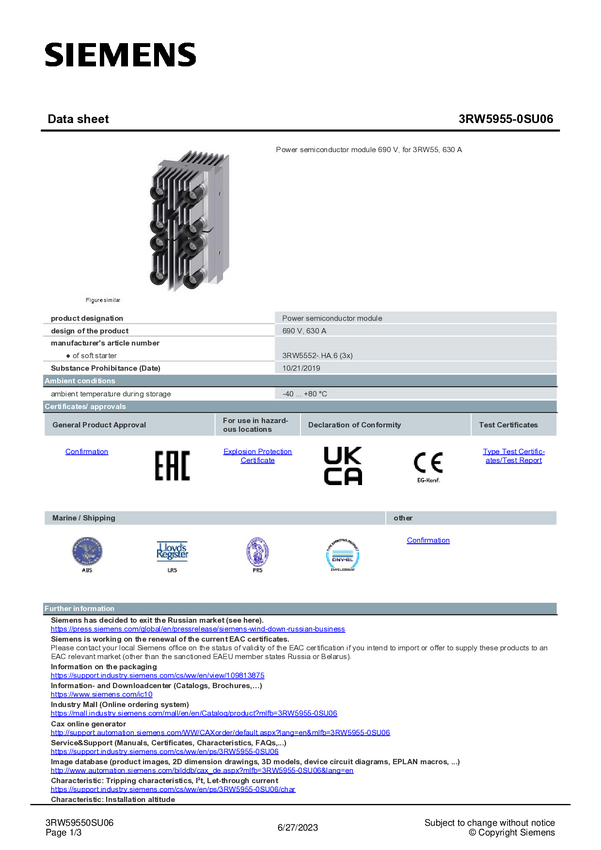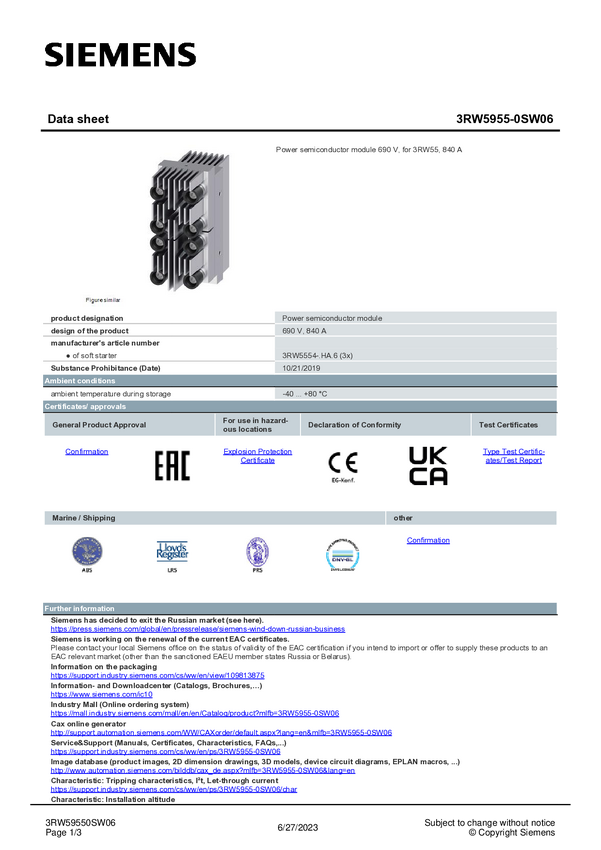 Półprzewodnik mocy Siemens 3RW5955-0SW06 3RW59550SW06