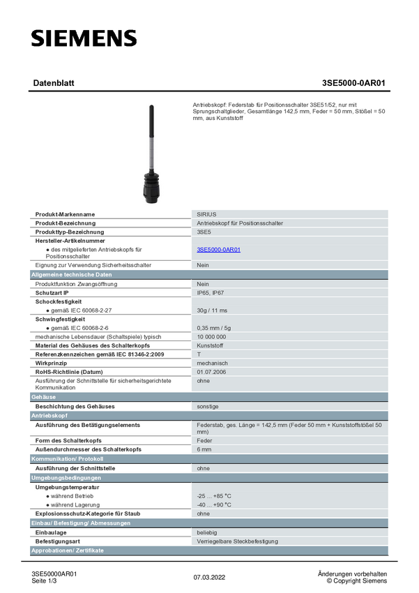 Siemens 3SE50000AR01 Siemens Dig.Industr. Głowica napędu czarny 1 szt.