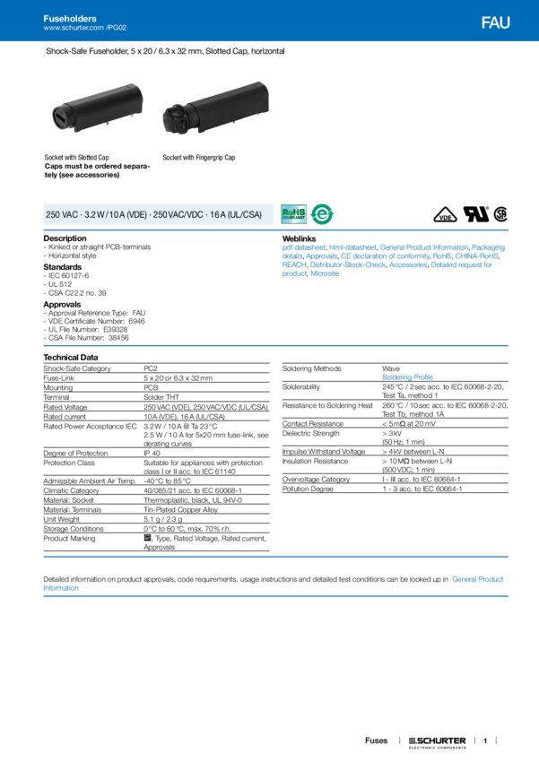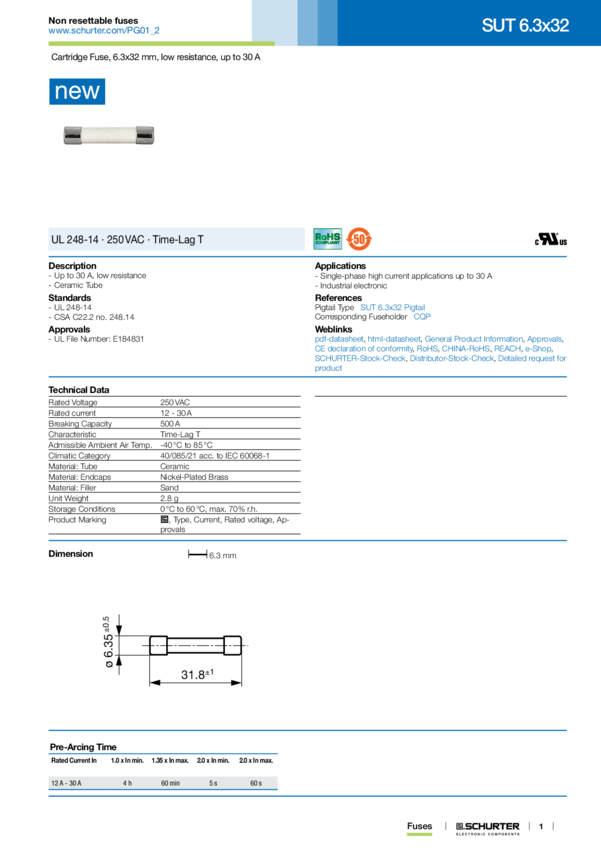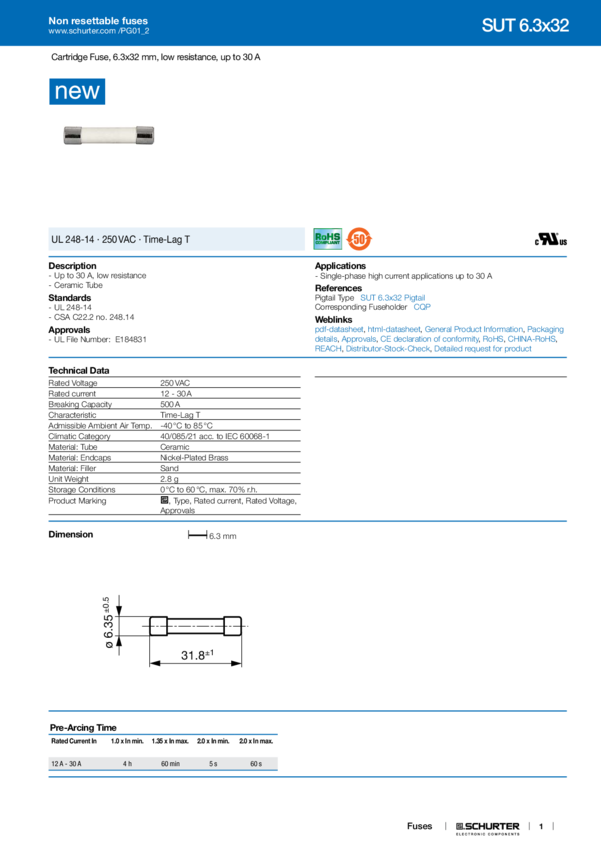 Fuse Misc, Non resettable fuses, Miniature Fuses, Type FST 6,3x32