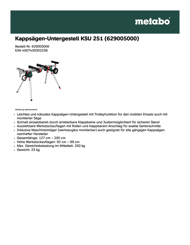 Stojak do piły ukosowej Metabo 4007430302236 629005000 1 szt.