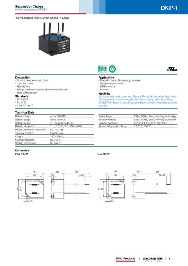 DKIP COMPENSATED CHOKE 1PH 15A 5mH